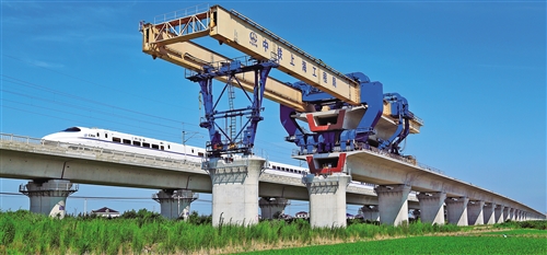 7月14日,江苏太仓,中铁上海工程局南沿江城际铁路施工现场。南沿江城际铁路是沪宁间第二条城际铁路,是长江经济带综合立体交通走廊的重要组成部分,计划于2023年4月建成通车。王 慧摄(中经视觉)