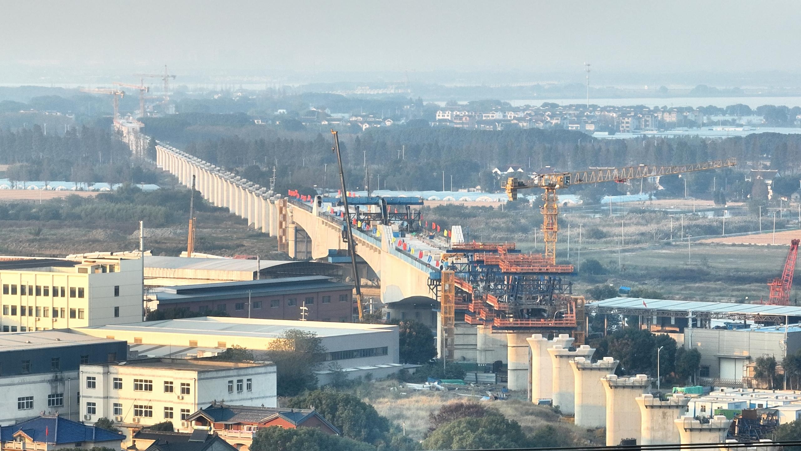 11月23日,中国中铁旗下中铁隧道局承建的南通至宁波高速铁路(简称通苏嘉甬高铁)江苏段最大跨度连续梁拱组合桥——苏南特大桥跨白蚬江连续梁拱组合桥主跨顺利合龙。