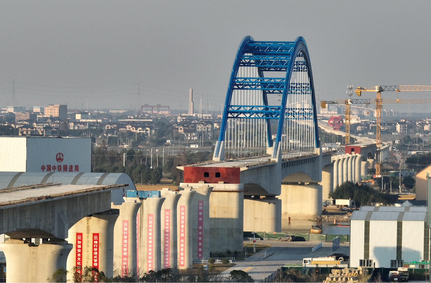 通苏嘉甬高铁苏南特大桥跨白蚬江连续梁拱组合桥主跨合龙